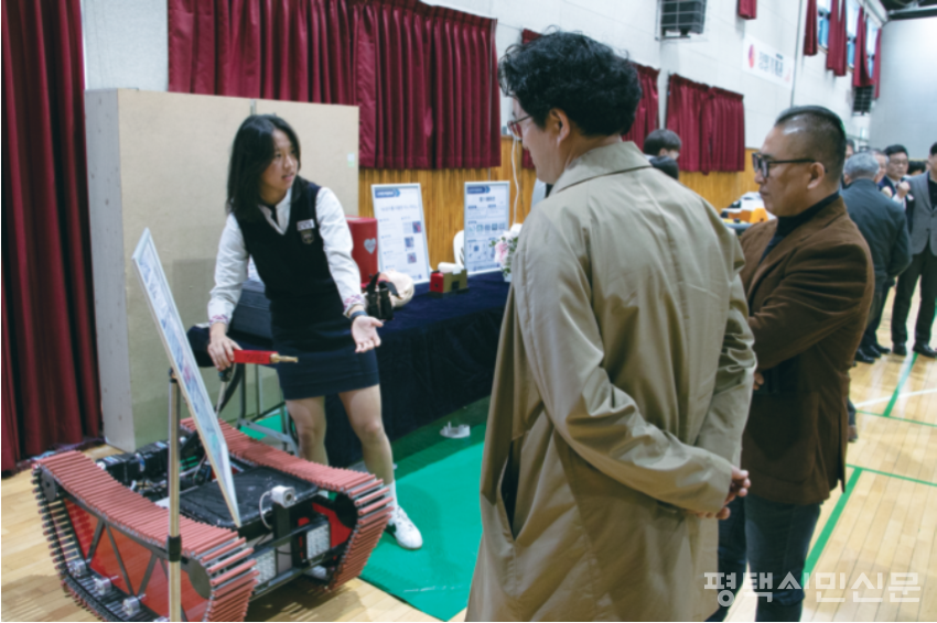 이날 행사는 평택마이스터고에서 진행되는 다양한 교육과정에 대해 소개하고, 학생들에게 다양한 학습기회를 제공하기 위해 마련됐다. 전시에서는 금형설계과 ‘미니사이버트럭’, 정밀기계과 ‘응급구조 모빌리티’, 스마트자동화과 ‘소방로봇’, 전기전자과 ‘자율주행 안내로봇’ 등 30여종의 작품이 전시됐다. 학생들은 전공별 기술 역량을 기반으로 한 창의적인 아이디어를 작품으로 구현해 1년간의 학습 성과를 선보였다. 특히 실제 산업 현장에서 활용가능한 실용적 설계와 기능 구현을 중심으로 구성돼 높은 완성도를 자랑했다.