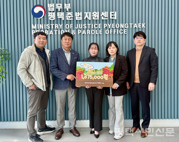 법무부 평택보호관찰소는 11월 5일 평택보호관찰소 회의실에서 보호관찰위원들이 참여한 자체 농장 ‘행복을 심는 들판’에서 수확한 고구마 수익 대금을 137만원을 기부했다.