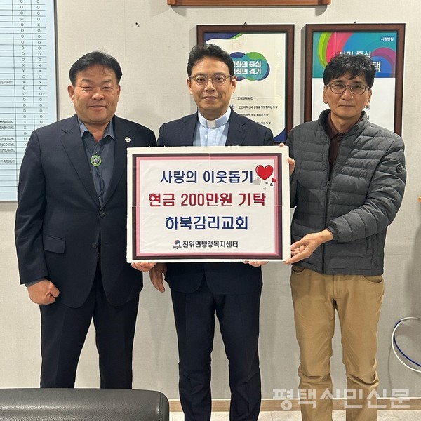 진위면 하북리에 있는 하북감리교회는 11월 25일 지역의 어려운 이웃을 위해 사용해 달라며 성금 200만원을 진위면행정복지센터에 기부했다.